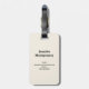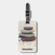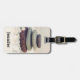 Ett bagagemärke med ett foto med sten staplar ovanpå varandra. Omgiven av lös vit sten och små vita blommor.