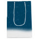 Vit stjärna Julgran i blått med en glödande fullt måne, söt kanin och röd kardinal. Snowflake overlay. Text kan redigeras eller tas bort.