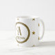 Detta monogram morgonte eller kaffe mugg är en unik bröllop- eller husuppvärmningsgåva till någon speciell. Guld stjärna mönster visas mot en vit bakgrund. Ditt monogram finns i en mittcirkel i en gyllene gult färg tillsammans med familjen namn. Anpassa enkelt färg och text till kostym på det sätt du vill. Ursprunglig design - C. McGouldrick