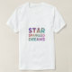 Den här klassiska vita t-shirt-texten "Star-Spangled Dreams" har en fetstilt, tryckt multifärgad. Varje ord har ett unikt struktur och ett annorlunda färg, ge den utformning som vintagen känner.