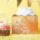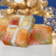 Den här pappra inslagningen har en Boho-design av stjärnsprängningar i gamboge (guld), rött, bär och grönt.