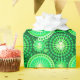 Digitalt genererad fractal starburst och pinhjulgrafik i skuggor av blek mynta till löv grönt, accentuerad med vitt, på bakgrunden av gräs grönt mörk