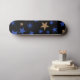 Kryssa runt i himmelskt stil med detta stjärnfyllda skateboarddäck! Med en mörklila bakgrund översållad med en mängd stjärnor i guld, blå och lila nyanser, ger denna design kosmisk energi till varje åktur. Oavsett om du kör på gatorna eller visar upp den som konst, är det ett fantastiskt sätt att uttrycka din stil.