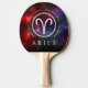 Visa upp din personlighet med den här zodiakinspirerade tennis-paddeln från bord, som har den stiliserade astrologiska karaktären för Aries, det första tecknet i den Westerna zodiaken, omringad av fyra nyckel-egenskaper hos dem som är födda under fårsymbolen och utgiven på ett stjärnfält som är målat med polykromatiskt stjärnstoft över den svarta sammetnatten! Lägg till personlighetsegenskaper / namn / etc till ditt tecken och justera filter och typsnitt efter behov! Omvänd visar identisk design. Design och Kopiera © W.H. Sim. Alla Höger reserverade. Se mer på zazzle.com/expressionsoccasions