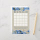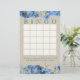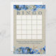 Den varma inbjudan till att se ut som en burlap med stjärnfisk och vackra blåa hydrangeas tryckt bingo-kort för ett roligt duschspel för att ge komplimanger till all rustik strand land stil möhippa eller möhippa.