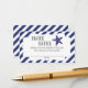 Skarpt raffle biljett med nautisk stjärndesign och marin blå rand-bakgrund.