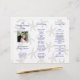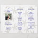 Fotot-bröllopsprogrammet kan vikas in i tredjedelar. Dragveck med stjärnbakgrund och blått indigo-mönster. Anpassa i tre avsnitt med ett foto av paret på frontpanelen. Baksidan av detta papper kommer inte att ha mönster och kommer att vara helt vit.