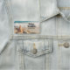 Ett namn bricka med ett scenfoto. En stor stjärnfisk satte sig upprätt på en sandstrand. Ett vackert blåhav med vågar av vit surfa i bakgrunden.
