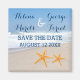 Ett vackert foto av en strand med ett par stjärnfiskar på sandberget i bröllop spara datum-magnet. Välj den här fina designen för din avslappnad, sommardestinationen vid bröllop.