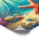 Här visas en vismisk och livfull illustration av en stjärnfisk som vilar på havssandan grund, omgiven av korall och belyst med mjuk, filtrerad solström genom vatten.