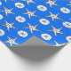 Starfish och sanddollar mönster på blå bakgrund. Anpassningsbarnas omslutning papper. Tanken på vuxnor och barn som kärlek i havet.