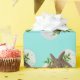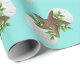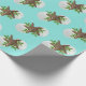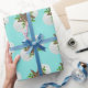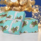 Beach-julutformning på kvalitetsrulle av presentfigursättning. Starfisk med grönt holly löv och två sanddollar är mönster som täcker tropiska blåa pappra.