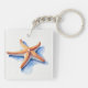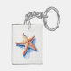 En illustration av en orange stjärnfisk med dess blå silhuett under. Vattenfärg teckning. Det kan vara en bra illustration för användan i nyckelkedjan, särskilt om du gillar illustrationen också!
