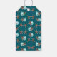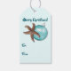 Starfish och prydnadsjulklapp märkre att binda sig vid presenter. Ljusblått färg med brunhavsstjärna och akvblått boll-dekorationsdesign. Lägg till hälsning överst med texten "God jul", "Glad helg" eller "Säsonhälsningar". Under designen är ställe för "for and from" namn. Reverse har en mönster av svält och prydnadsföremål. Välj en tvilling färg.