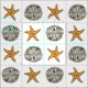 Den här stranden har utskrifter med stjärnfisk och sanddollar. Underbar för använda i strandhus, badrumsdekaler eller roligt köksdesign. Ändra bakgrunden till färg eller välj en annan struktur som passar ditt projekt.