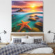 Orange Starfish in a tidal bassäng medan sol stiger i den avstånd Ai-genererade konsten med minx267