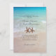 Blåhavet och stranden är bakgrundsbilden på den här inbjudan till strandbröllop med två stjärnfiskar som representerar paret. Bron och gruppen bjuder in gästerna med formuleringen "gå med oss" - eller ändra det som ni vill. Teckensnittet stil med namn i skript. Reverse har också en strandscen.