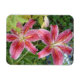 Här är en söt bild av svältliljor i en trädgård. Man kan se en hemgjord språngbräda med glaset delar i bakgrunden. Kolla in vår butik om du vill ha mer färgstarka foton på blommigten. Bild är också typiskt tapet "Stargazer Lilies" från www.mlewallpapers.com.
