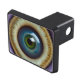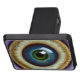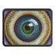 Bara iris och pupil från en ögonboll. Iris består av tre koncentriska ringar, varje indrag djupare än det sista. Det yttersta randområdet är vitt med gult- bruna strimmor. Mitten är mörk blått med vita till ljusblå strimmor. Gröntens centrum övervinns med gulter. Elevruppen är liten och svart.
