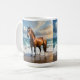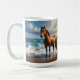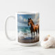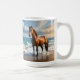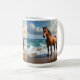Stark brun häst på stranden. kaffemugg