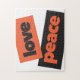 Modern, enkel och livfull typografisk utformning av ett ordspråk som heter "fred i Kärlek" i orange och svart färg. Coola, stadskörning, trendig, fet och lekfull grafisk vektorkonst