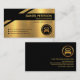 Över i det övre hörnet finns din prestigefyllda namn och jobbtitel med en slogan som visas precis nedanför i lagrar i guld. Använda den här bildtexten för att publicera dina tjänster. Därefter följer en guld-logotyp i halvlastbil som du kan använda. Kontaktuppgifter finns i deras respektive svarta knappar nära kortets bas.