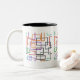 En dynamisk, geometrisk design med fet, förreglande former i olika storlekar och ljusa färger.
