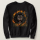 En digital illustration som visar en häftig lejon med ett detaljerat och realistiskt stil. Att omge lejona är ett pulserande ring av flammor. Texten "KUNG" är skriven med fet stil
