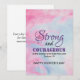 STARK MODIG kristen mors dag-kort. Vackert kristet kort för mors dag, med rökigt blå och rosa bakgrund, med texten STARK OCH MODIG ÄR KVINNAN SOM FRKTAR HERREN från Josua 1:9. Inuti finns Anpassningsbar text så att du kan anpassa ditt meddelande. Matchande gåvor tillgängliga.