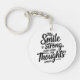 Den här kraftfulla typografiska designen innehåller det upplyftande och relativt citat: "Mitt leende är starkt även när mina tankar inte är det." De svarta, stiliserade, penselskriptbokstavspunkterna mot en lätt grått-bakgrund skapar ett fet påstående. Det är en bild som fångar den känslomässiga återhämtningsförmågan hos att maskera inre turbulens med yttre positivitet. Perfekt för använda som en motiverande poster, ett mobilt tapet eller för att dela med sig på social-medier.
