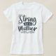 Stark som en svart, modern T-Shirt-Snyggt i svart skript i Mor, "Stark som Mor", typografi. Den här T-shirt-designen firar mor styrka! Den fetstilta, lekande texten "Stark som A Mor" visas i en pulserande multifärgad, där varje brev skryter med en annan nyans. Texten är centrerad på en vanlig vit t-shirt, skapar det som ett utstående påstående biet.