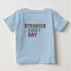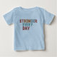 T-shirt-designen har en fet, minimalistisk design med frasen "Starkare varje dag" tryckt i ett stort, sans-serif-teckensnitt. Texten är centrerad på skjortan med en subtil oskärpeeffekt som skapar en dynamisk bakgrund. Den totala estetien är ren och modern, med en motiverande ton.