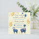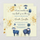 Vi firar att din lilla vän kommer och sparar datumkortet. I denna utformning visas vackra vattenfärgsillustrationer av skogsdjur, inklusive en kanin, en hedgehog och en tvättbjörn, som ställs mot en bakgrund av golden folie stänk. De charmerande detaljerna och den fredliga paletten i färg skapar en magisk ambians, perfekt för att bjuda in gäster till din babydusch. Anpassa kortet med din evenemangsinformation och förbered dig på att välkomna dina vänner och din familj till firande.
