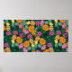 starkt blommönster på gröntens bakgrund. Vinta Poster