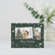 Julvykort med magisk grönt med snöflingor och stjärnor. Skapa ett vackert grönt fotojulvykort för din familj och dina vänner. Anpassa enkelt det här stjärnjulkortet med din familj namn, tre foton och ett meddelande.