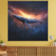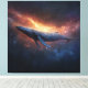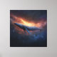 A majestic humpback whale glides horizontally through a breathtaking cosmic seascape, its body shimmering with embedded stars against a vivid orange-red nebula band that stretches across a deep indigo sky. The dramatic contrast between the glowing galactic core and the cooler blue depths creates an awe-inspiring sense of infinite wonder and peaceful exploration. This epic digital artwork blends oceanic grace with celestial beauty, perfect for canvas prints, posters, phone cases, mousepads, throw pillows, tapestries, and décor that turns any room into a gateway to the stars.