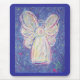 Konsten visar en mjuk pastellängel mot en mjuk blå stjärnnattbakgrund. Bilden var ursprungligen målad med akryl och avslutades sedan i pastellform för att skapa mjuk luminös färg.
