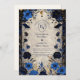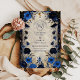 Elegant och mystik, den här midnattsblåa och guld celestial bröllop har djupa safirblommor, skuggande gyllene löv och måne och stjärnaccenter för en romantisk kosmisk beröring. Perfekt för en kväll firande under stjärnorna.