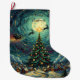 Turn your fireplace into an art gallery with this stunning double-sided Van Gogh-inspired Christmas stocking. Unlike ordinary stockings, this premium design features Santa's sleigh gliding across a swirling starry night sky on BOTH sides—no plain red backing here. Every angle reveals the magical winter village nestled beneath a glowing moon, creating a breathtaking 360° display. The vibrant teals, golds, and deep blues make this stocking impossible to miss and irresistible to admire. Machine washable and made from durable polyester, it's built to become a cherished family heirloom. Perfect for art lovers, design enthusiasts, and anyone who refuses to settle for ordinary holiday décor. Santa himself would be jealous of how beautiful this stocking looks hanging on your mantel.