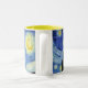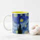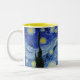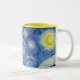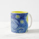 A fine art two-tone coffee mug with the post-impressionist painting by the Dutch artist Vincent van Gogh (1853-1890) Starry Night (1889). An evening landscape with stars and a crescent moon.