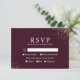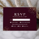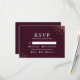 "Starry Night Deep Crimson Bröllop OSA Card" blandar sömlöst med en formell begäran från dina gäster. Den gyllene stjärnornas damm som sprinklats längs kant väcker skönheten hos en natt himlar. Kortet ger gästerna en tydlig och enkel layout för att visa sin närvaro och måltid, och bibehåller både den sofistikerade och moderna kärnan i ert bröllop-tema. Denna OSA kort fyller inte bara sitt praktiska syfte utan kompletterar också det stellära estetiska estetiska i bröllop-stationerna, vilket garanterar en konsekvent och magisk erfarenhet från den första inbjudan till det slutliga tackkortet.