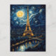 Detta är ett vackert vykort från Eiffel Torn, representerat i stil på den berömd konstnären Vincent Van Gogh. Franskens monument, belyst, lyser mycket i himlar på natten över Paris, med en svält himlar ovan. Floden Seine ligger i förgrunden. Perfektens vykort för alla som kärlek Van Gogh eller Paris.