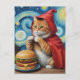Starry Night Ginger Cat med Cheeseburger Vykort
