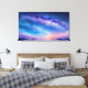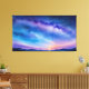 Den här förtjusande vattenfärgsdesignen fångar den fina skönheten hos en kosmisk skymt scen. En pulserande solnedgång på avlägsna silhuetter från bergsområden, som målar himmel i en mesmerierande palett med lila, blå och mjuka orangar. Den berömda expansionen ovan är försedd med roterande stjärnor och roterande nebulae, som skapar en drömmande, annan världslig atmosfär.