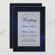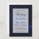 Den här kallelsen har som bakgrund en mörk blått stjärnkväll himlar.. Texten är i en genomskinlig vit rektangel. Tillfälle "Bröllop" och namn är skrivna i ett kalligrafiskt skript med blå elegant, resten med små svarta versaler.