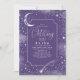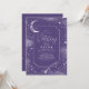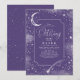 Silver och lila romantiskt mystiskt födelsedagsfest inbjudan med ett halvmånsfärande måne, med skjutstjärnor och galaxer.