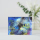 Starry Night Impressionist Tabby katt Porträtt Vykort