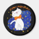 Vita Kattunge-blåstarrinatten med Guld Stars Classic Round Sticker lägger till en Halloween-beröring till dina presenter, kort och e-postmeddelanden.