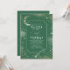 Romantisk och mystisk inbjudan till förlovningsfest med crescerande måne, jaktstjärna och galaxer.