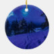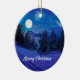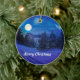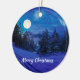 Vinternatt med magisk vinter med fullt och fryst i snö och skarpsill träd under vintern. Starry night. Snöskog på natten i månljus.